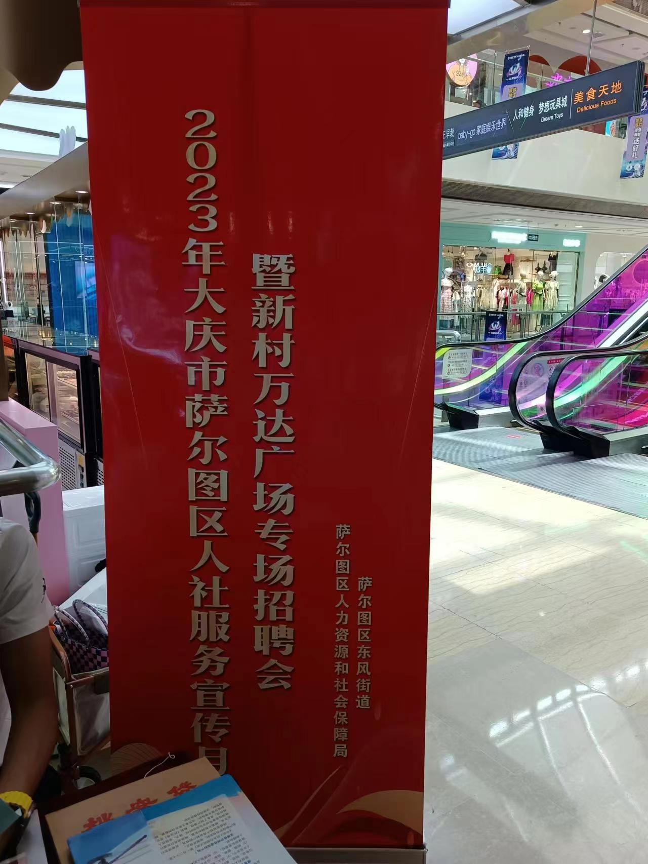 6月3日上午9:30----11:00分,大慶市薩爾圖區(qū)人社局在新村萬(wàn)達(dá)廣場(chǎng)舉辦了“2023年大慶市薩爾圖區(qū)人社服務(wù)宣傳月暨新村萬(wàn)達(dá)廣場(chǎng)招聘會(huì)”。