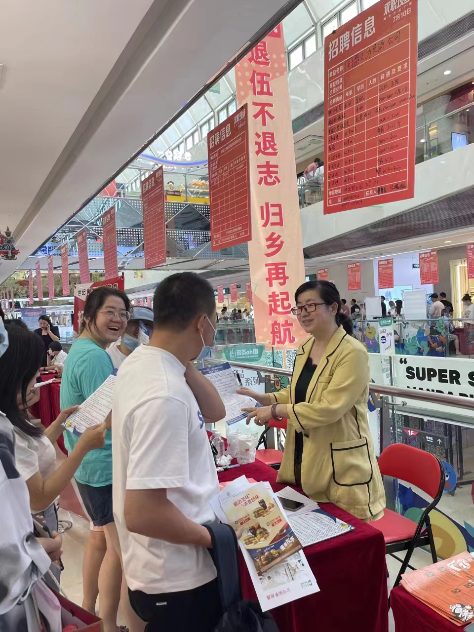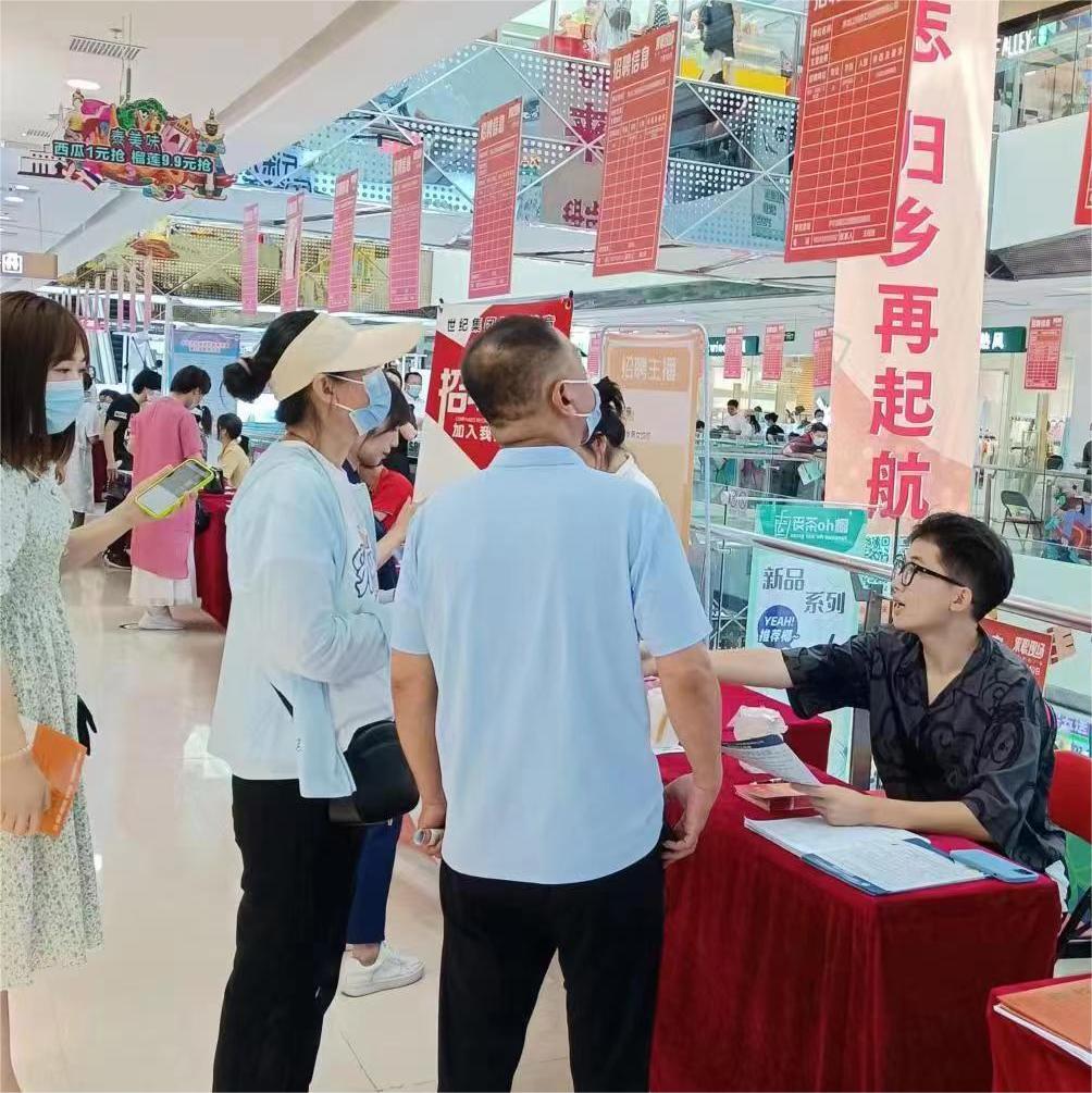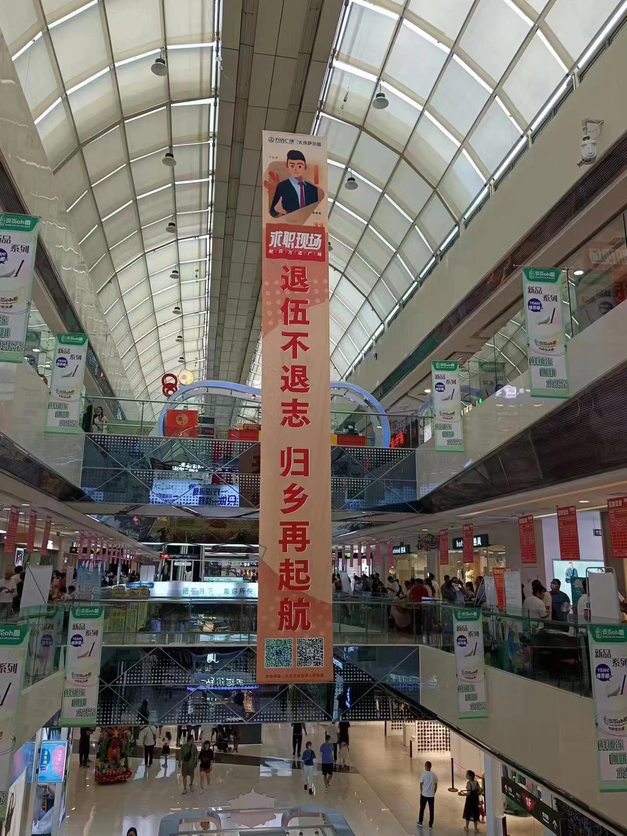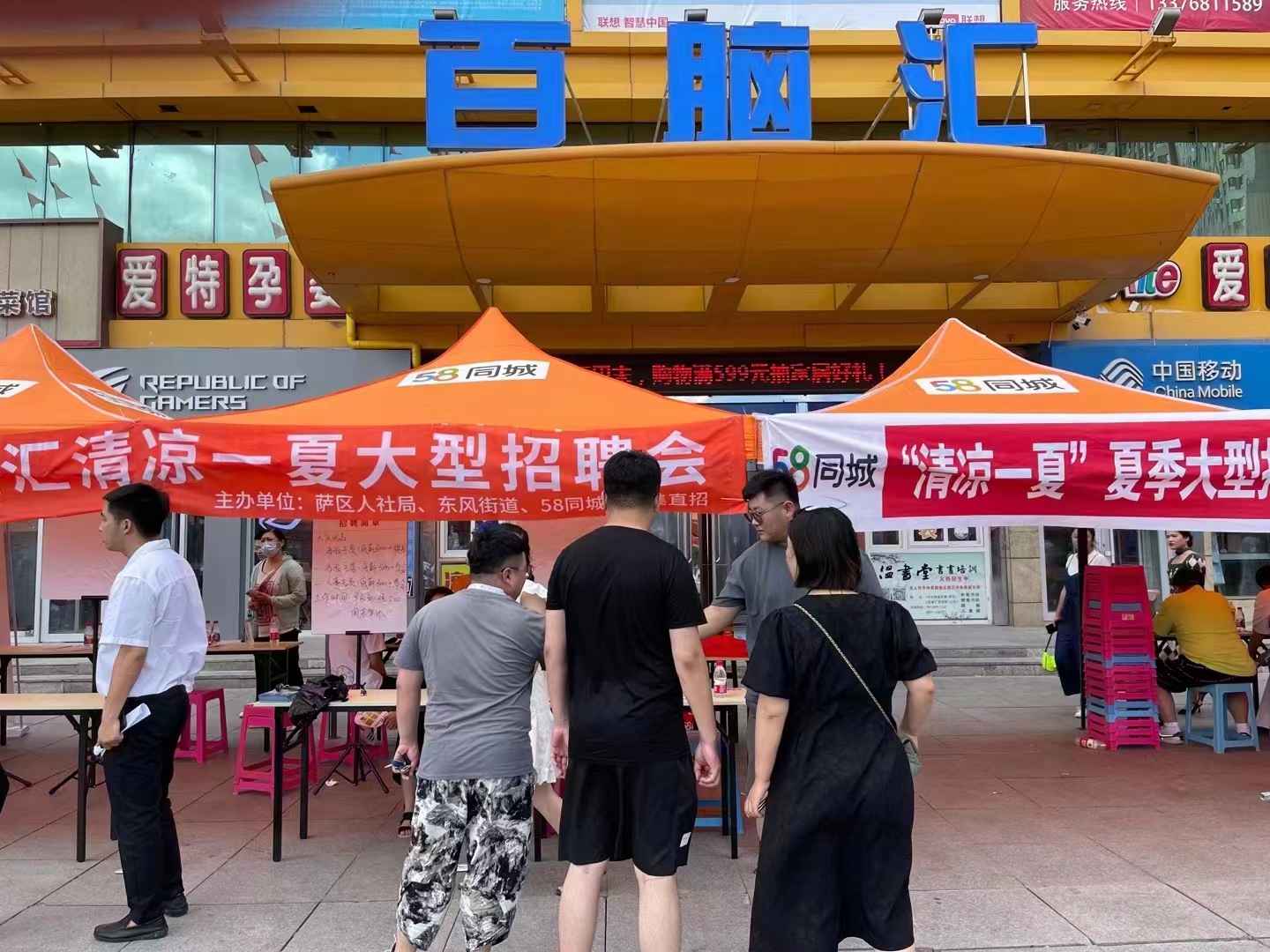 7月10日上午,新村萬達(dá)休閑廣場人流如潮。大慶市人社局和五八同城聯(lián)合舉辦的“清涼一夏”大型招聘會萬達(dá)專場如火如荼進(jìn)行。